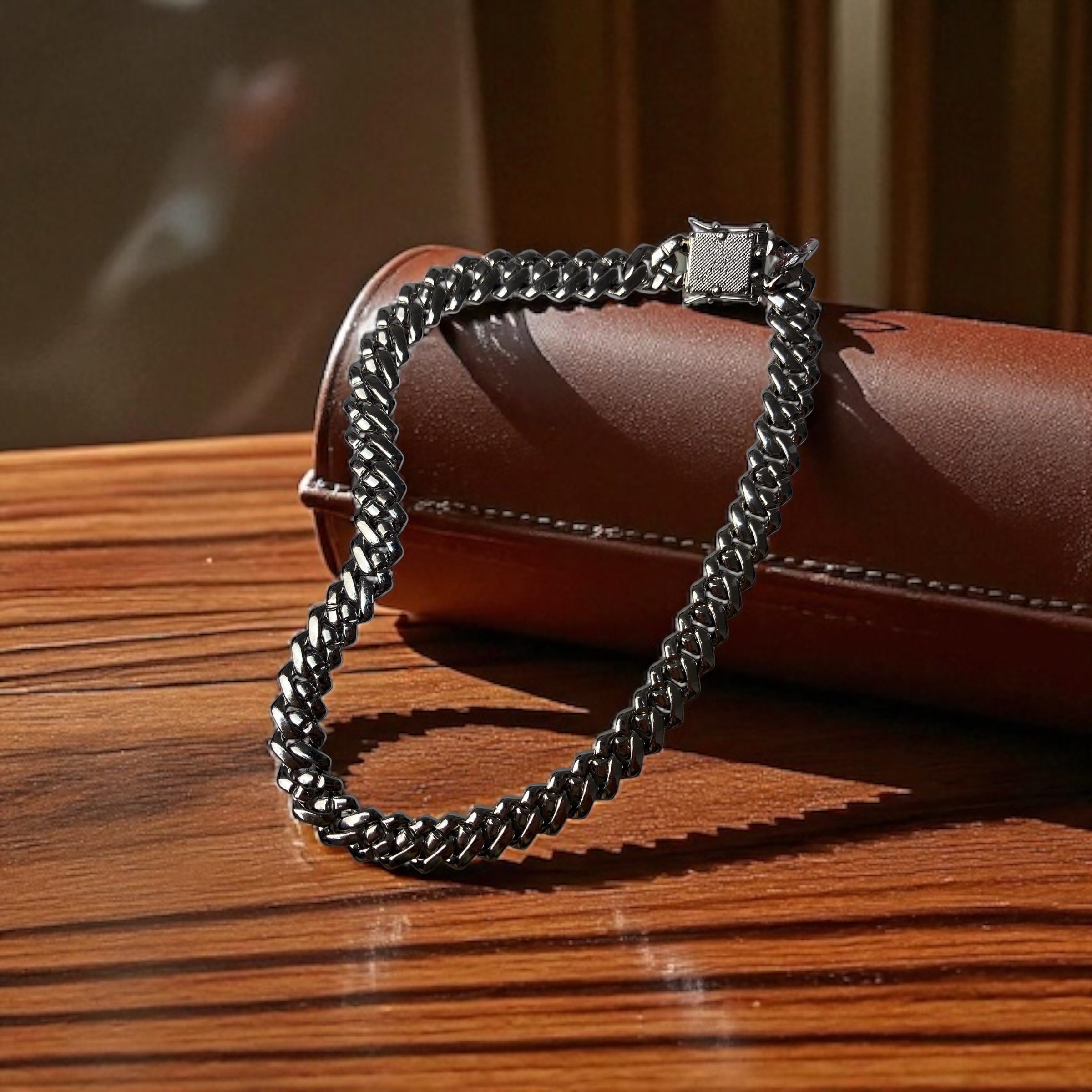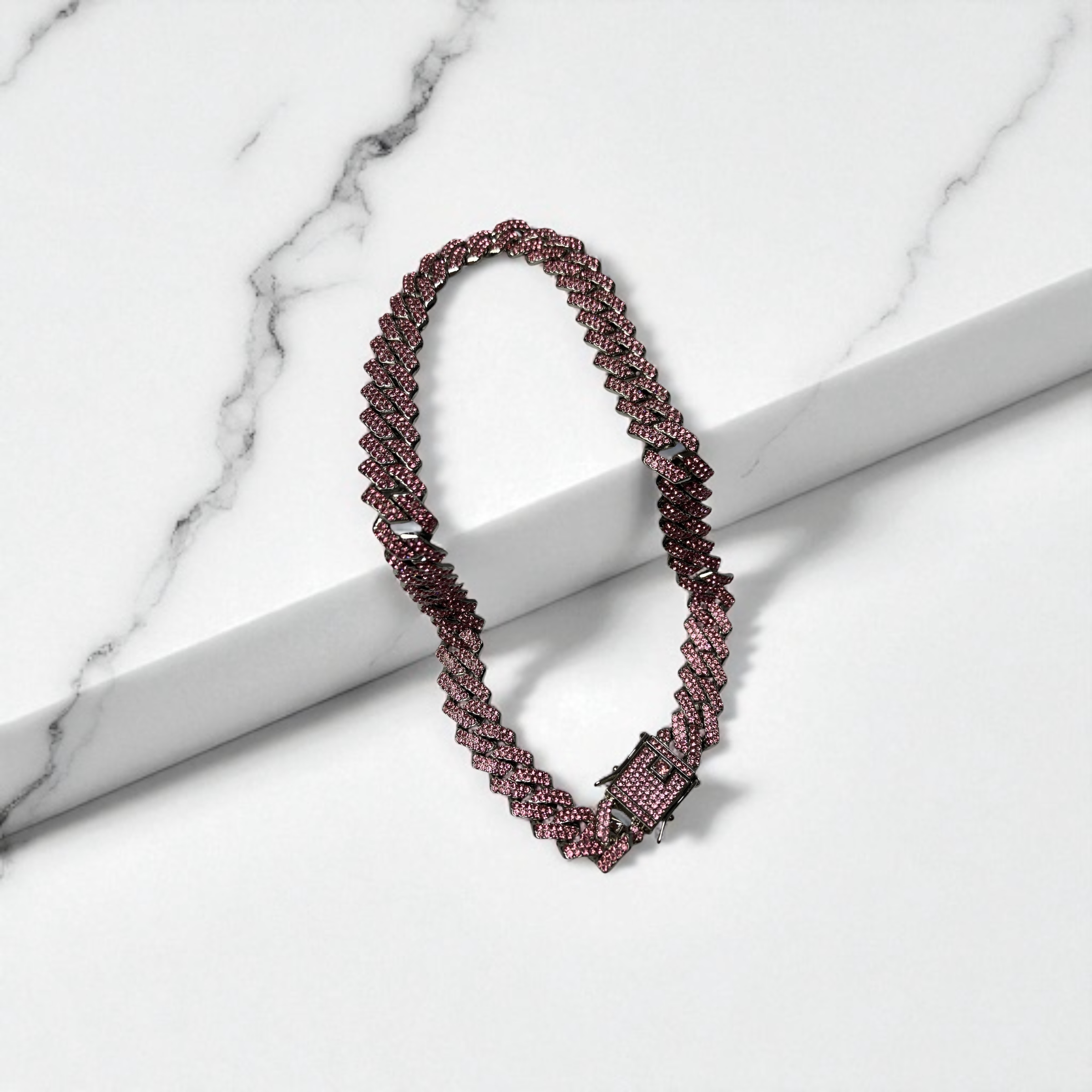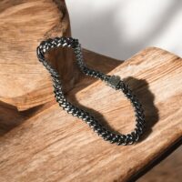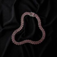 این گردنبند زیبا با طراحی خاص و بافت زنجیری پهن، جلوهای لوکس و متفاوت دارد. رنگ رزگلد درخشان آن درخشش بینظیری ایجاد کرده و سطح آن با نگینهای ریز کار شده که جلوهای درخشان در نور ایجاد میکند. قفل محکم و ظریف آن نیز با دقت بالا طراحی شده و با ظاهر کلی گردنبند هماهنگ است. از ویژگیهای خاص این مدل میتوان به دو رو بودن آن اشاره کرد، به این معنی که از هر دو سمت قابل استفاده است و ظاهر آراسته و یکدستی دارد. این گردنبند انتخابی عالی برای مجالس رسمی و استایلهای خاص است.