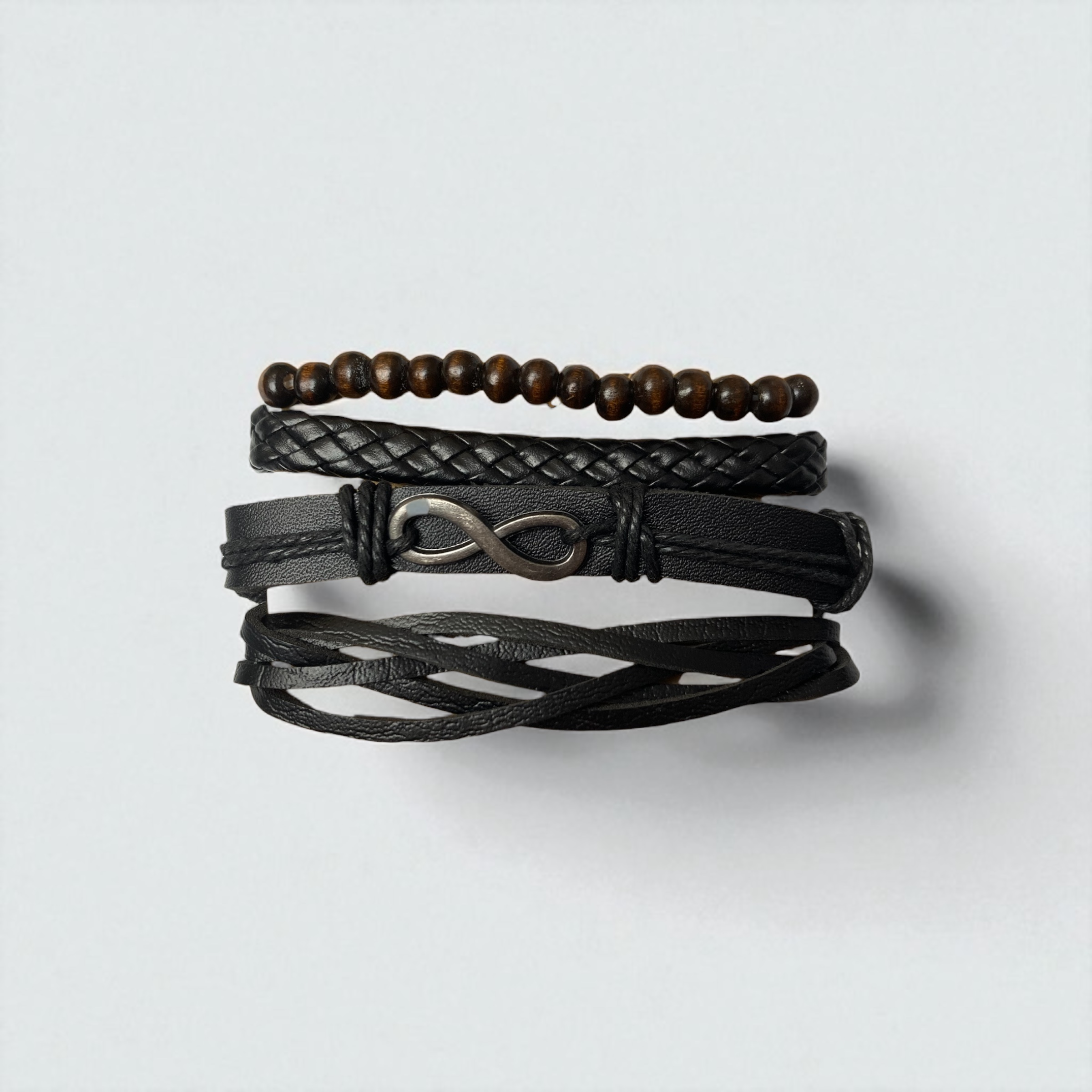 دستبند چندلایه مردانه چرم و مهره با نماد بینهایت