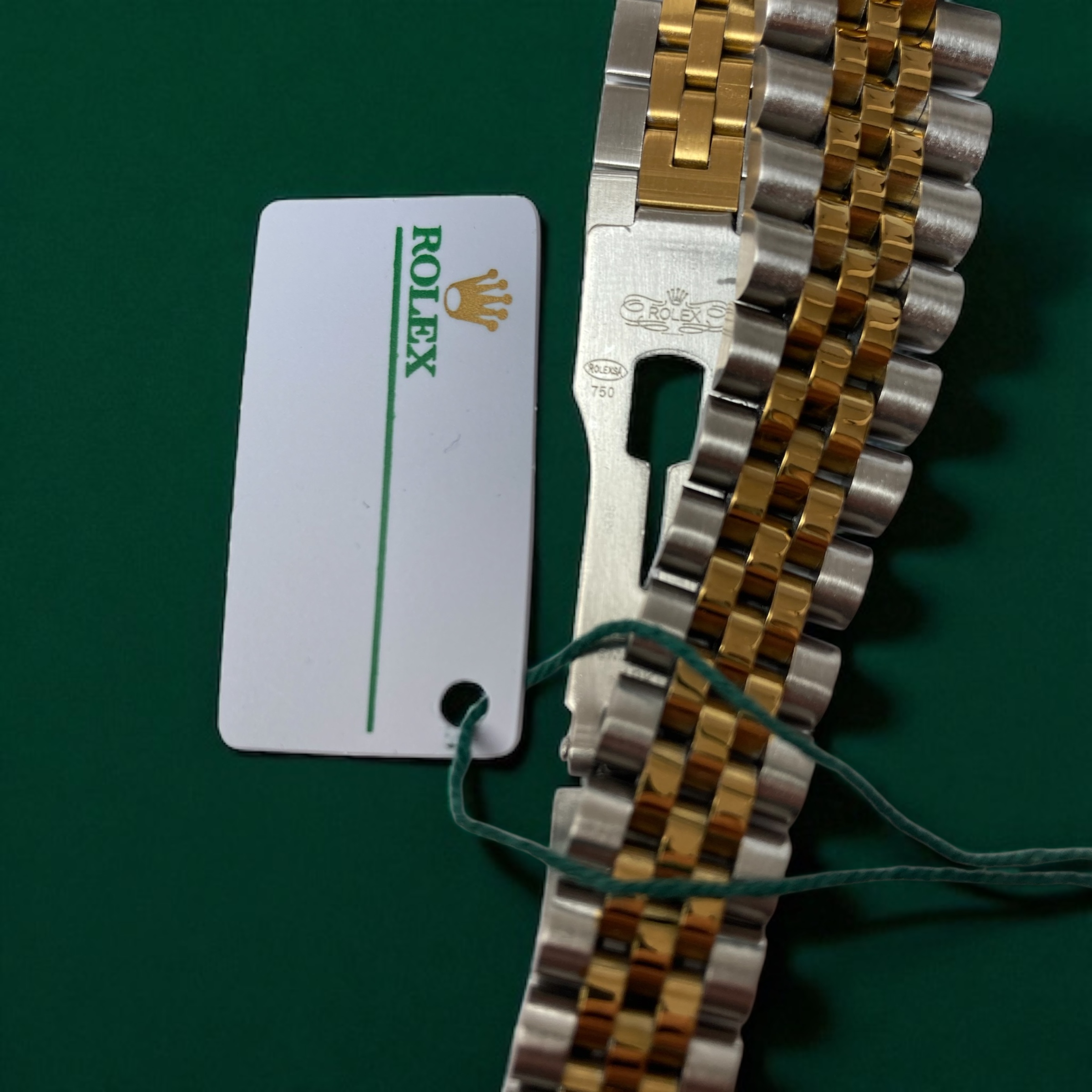 بند ساعت از استیل با آبکاری طلایی با کیفیت بالا ساخته شده که مقاوم در برابر زنگزدگی، خط و خش و تغییر رنگ در طول زمان است. قفل ساعت از نوع کلاسیک رولکس (کلیپسدار) است که علاوه بر زیبایی، امنیت خوبی را هنگام بستن روی مچ فراهم میکند.