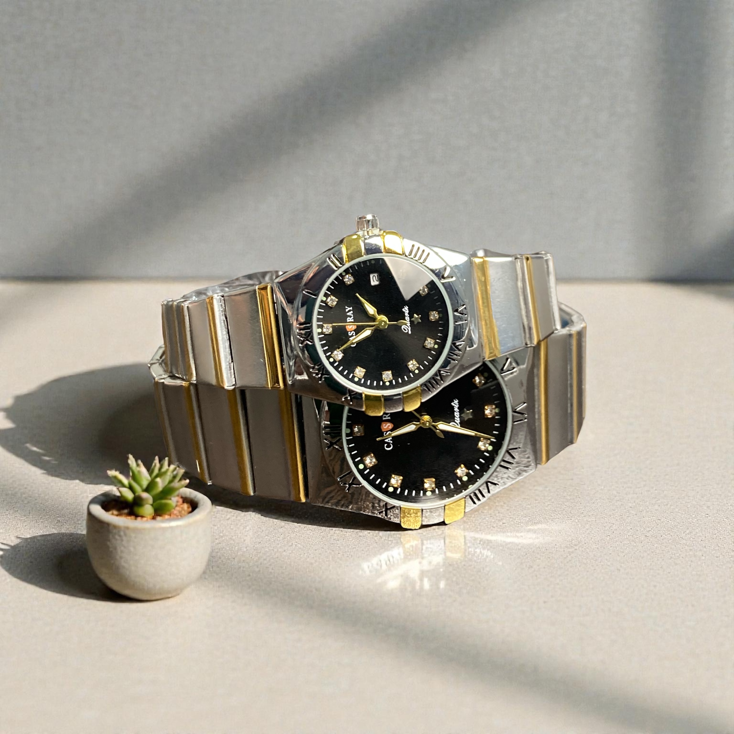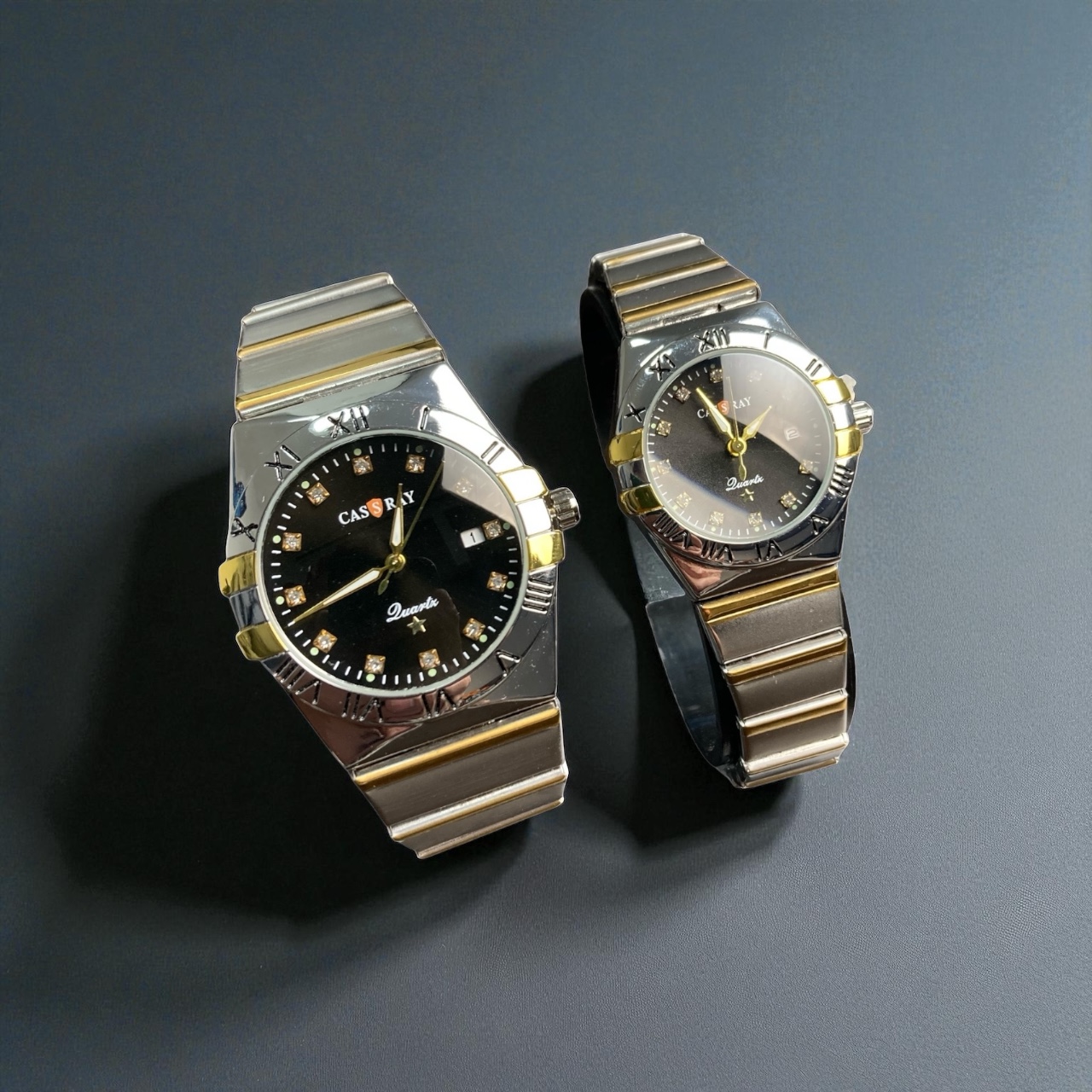 ست ساعت مچی همیشه یکی از بهترین انتخابها برای زوجهایی است که به هماهنگی ظاهری و جذابیت بیشتر اهمیت میدهند. برند Cassray که در تصویر مشاهده میشود، با طراحی خاص، ترکیب رنگی لوکس طلایی و نقرهای، و صفحه مشکی جذاب، یک انتخاب کاملاً چشم نواز و حرفهای محسوب میشود. این مدل جزو ستهای پرطرفداری است که هم برای هدیه و هم برای استفاده روزمره، رسمی و نیمه رسمی مناسب است.