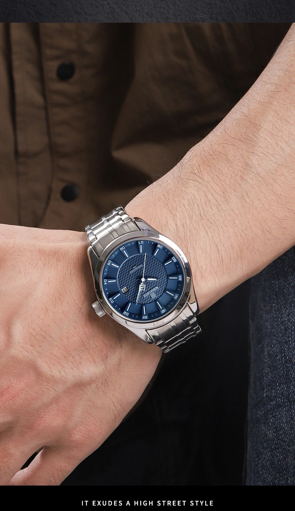 مشکی یا سرمهای پوشیدهای؛ این ساعت با بند فلزی براق و صفحهٔ آبی، جلوهای لوکس به تیپت میدهد. از طرف دیگر، اگر با شلوار جین و پیراهن ساده بپوشی، باز هم این ساعت با طراحی مدرنش استایل اسپرتتو را کامل میکند.