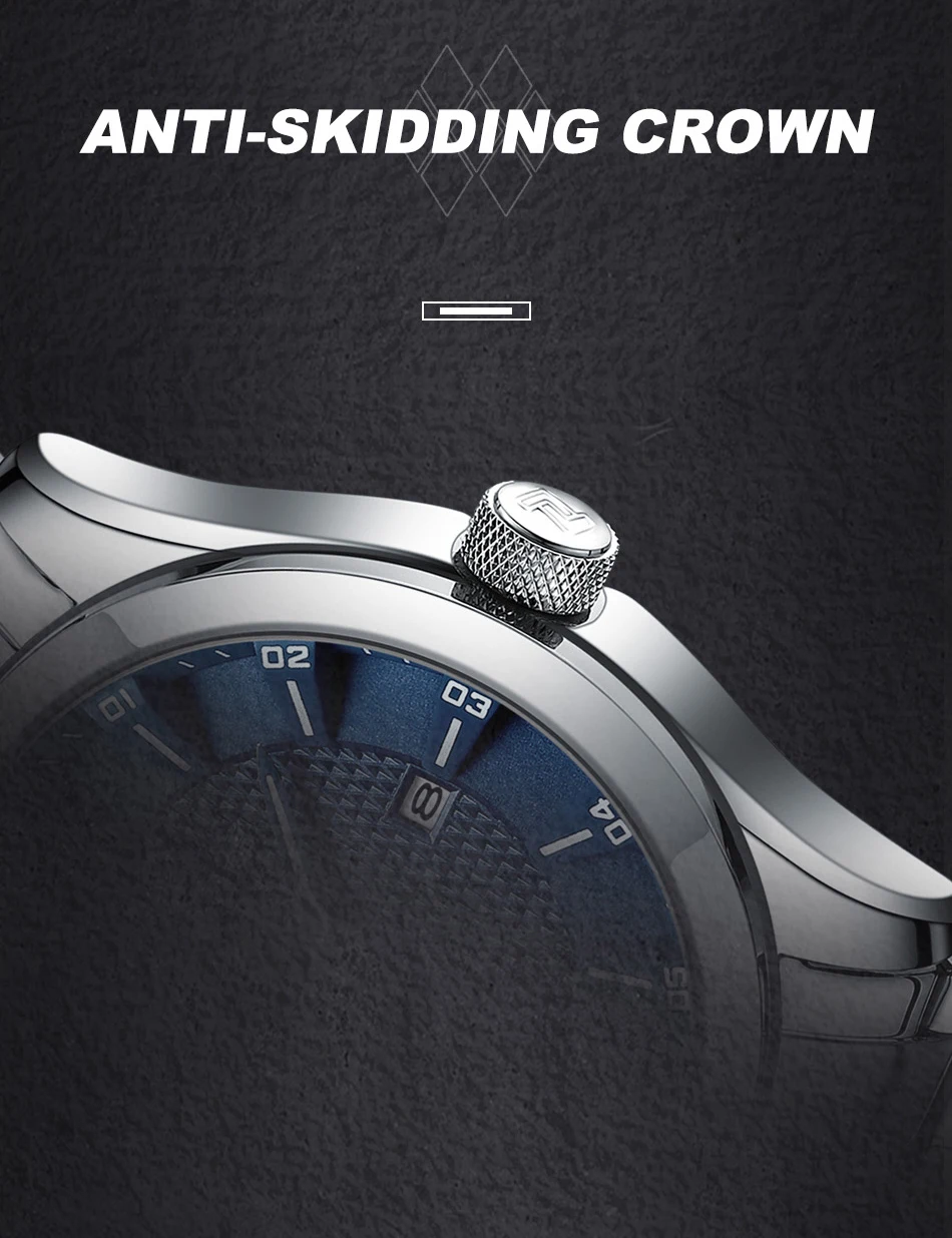بند ساعت از جنس استیل ضدزنگ با کیفیت بالا طراحی شده و طراحی سگک قفل آن بهگونهای است که هم ایمنی بالایی دارد و هم استفاده از آن راحت است. این نوع بند فلزی، علاوه بر دوام بالا، حس لوکس بودن را به ساعت میبخشد. اندازهٔ لینکهای بند بهخوبی متناسب است و برای انواع مچها قابل تنظیم خواهد بود.
