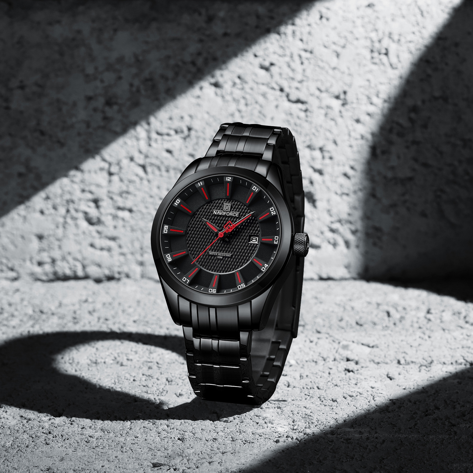 وقتی ساعت Naviforce NF8032 را روی دستت میبندی، اولین چیزی که حس میکنی، وزن متعادل و لطیف آن است. بند فلزی نرم روی مچ قرار میگیرد و قفل آن محکم بسته میشود. نگاه به صفحهٔ مشکی ، با آن طراحی برجسته و نمایشگر تاریخ، حس حرفهای بودن را منتقل میکند. این ساعت نه فقط یک ابزار برای دیدن زمان، بلکه بخشی از استایل تو میشود.
