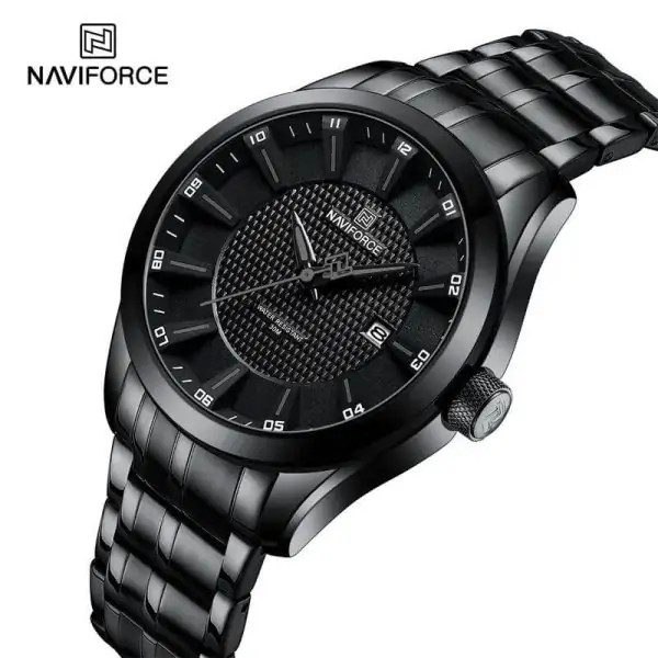 Naviforce NF8032 یک ساعت مردانهٔ تمامعیار است که ترکیبی از زیبایی کلاسیک و طراحی مدرن را ارائه میدهد. بدنهٔ استیل ضدزنگ، صفحهٔ مشکی شیک، عقربههای فلزی خوانا و نمایشگر تاریخ، این مدل را به انتخابی ایدهآل برای استفادهٔ روزمره و رسمی تبدیل کردهاند. قیمت مناسب در برابر کیفیت بالا و طراحی حرفهای، باعث شده این مدل یکی از پرفروشترین ساعتهای Naviforce باشد.