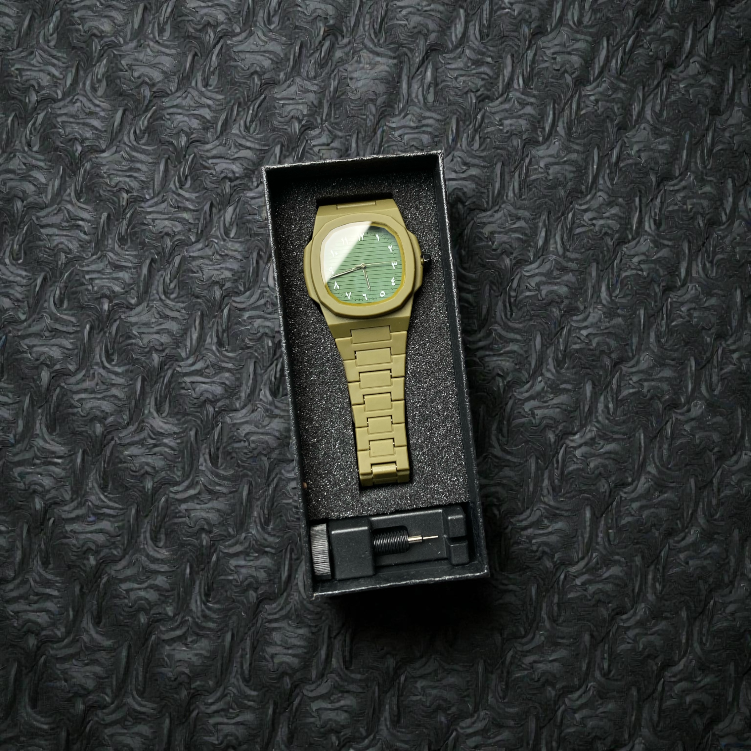 صفحه ساعت با الهام مستقیم از سبک طراحی Patek Philippe ساخته شده است؛ سبکی که بر پایهی سادگی عمیق، نظم هندسی و تعادل بصری شکل گرفته. صفحه دارای خطوط افقی ظریف است که به آن عمق و بافت میبخشد و باعث میشود نور به شکلی زیبا روی سطح آن بازی کند.