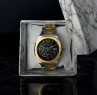 صفحه‌ی مشکی ساعت دارای جزئیات فنی زیبایی است که عمق و بافت خاصی ایجاد می‌کند. استفاده از عقربه‌ها و نشانگرهای طلایی، در کنار قاب ترکیبی (استیل و آبکاری طلایی)، هارمونی رنگی منحصربه‌فردی ایجاد کرده که این ساعت را به‌راحتی قابل ست‌کردن با استایل رسمی و مجلسی یا حتی نیمه‌رسمی می‌سازد.