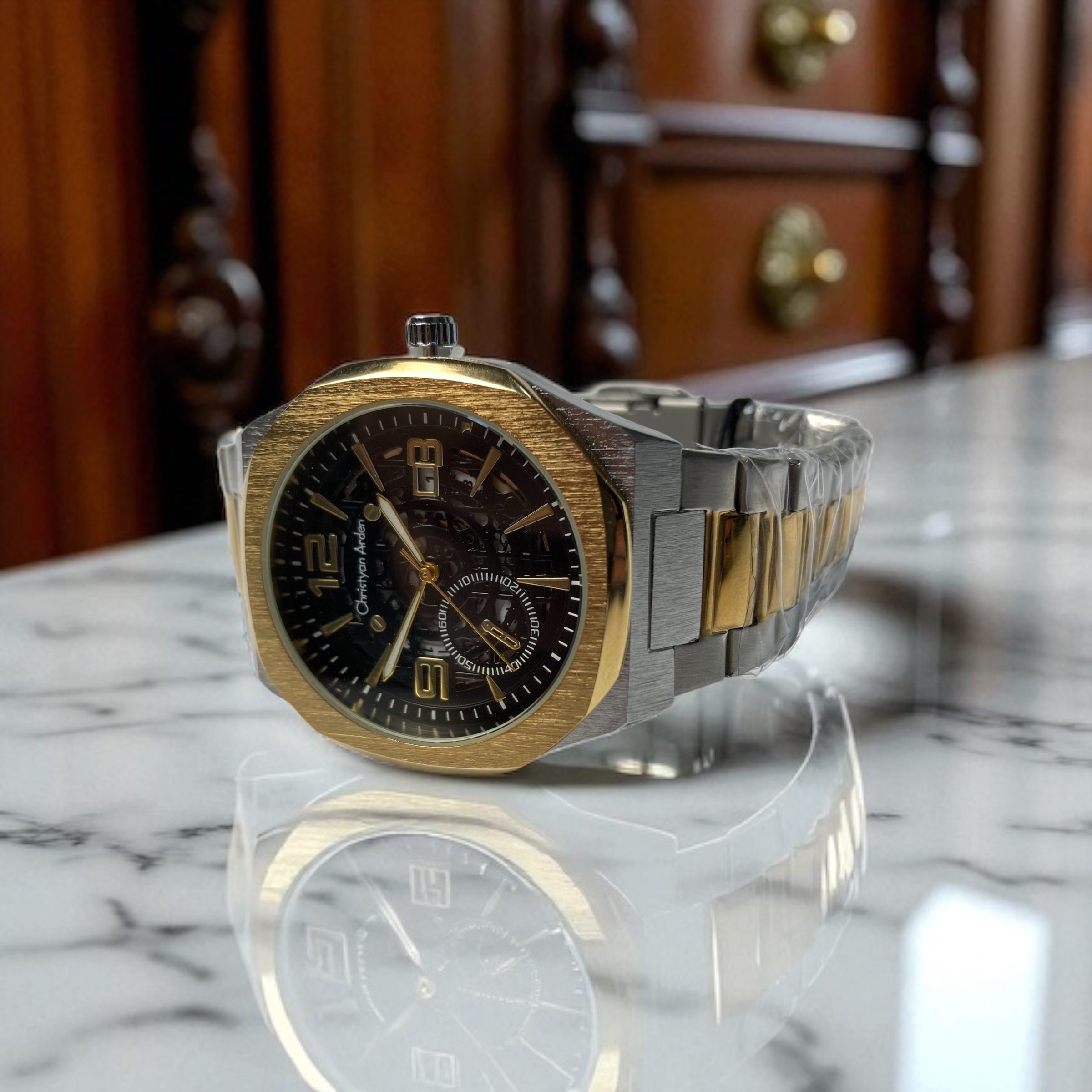 یکی از ویژگی‌های جالب و متمایز این مدل از ساعت Christyan Arden، ظاهر آن است که کاملاً شبیه به ساعت‌های مکانیکی اتوماتیک طراحی شده است. اگرچه این ساعت از نظر فنی دارای موتور کوارتز ژاپنی است و نیازی به کوک دستی یا حرکت دست برای شارژ ندارد، اما طراحی پیچیده‌ی عقربه‌ها، جزئیات صفحه و حالت کلی بدنه به گونه‌ای است که در نگاه اول، حسی مشابه با ساعت‌های اتوماتیک لوکس سوئیسی را القا می‌کند.
