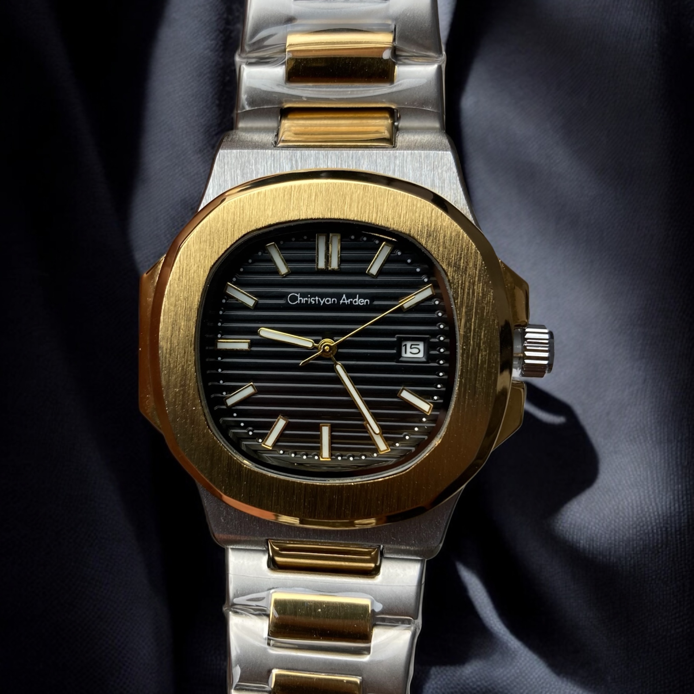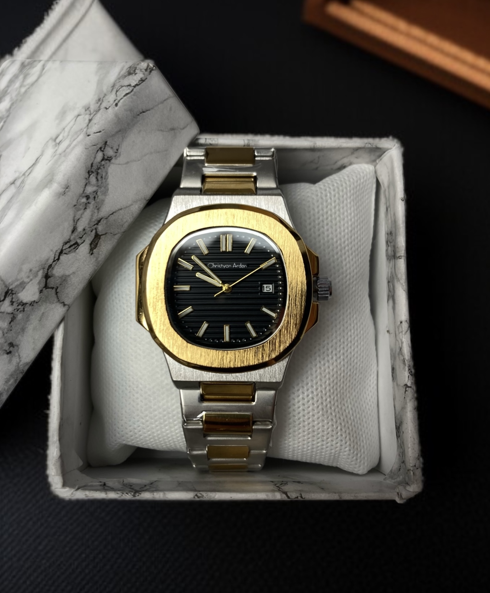 اگر بهدنبال ساعتی با طراحی کلاس جهانی، کیفیت ساخت عالی و الهامگرفته از یکی از مشهورترین مدلهای تاریخ صنعت ساعتسازی هستید، ساعت مچی مردانه Christyan Arden مدلی بینقص برای انتخاب شماست. این ساعت با طراحی مشابه سری Patek Philippe Nautilus، تجربهای لوکس اما در دسترس را برای علاقهمندان فراهم میکند.