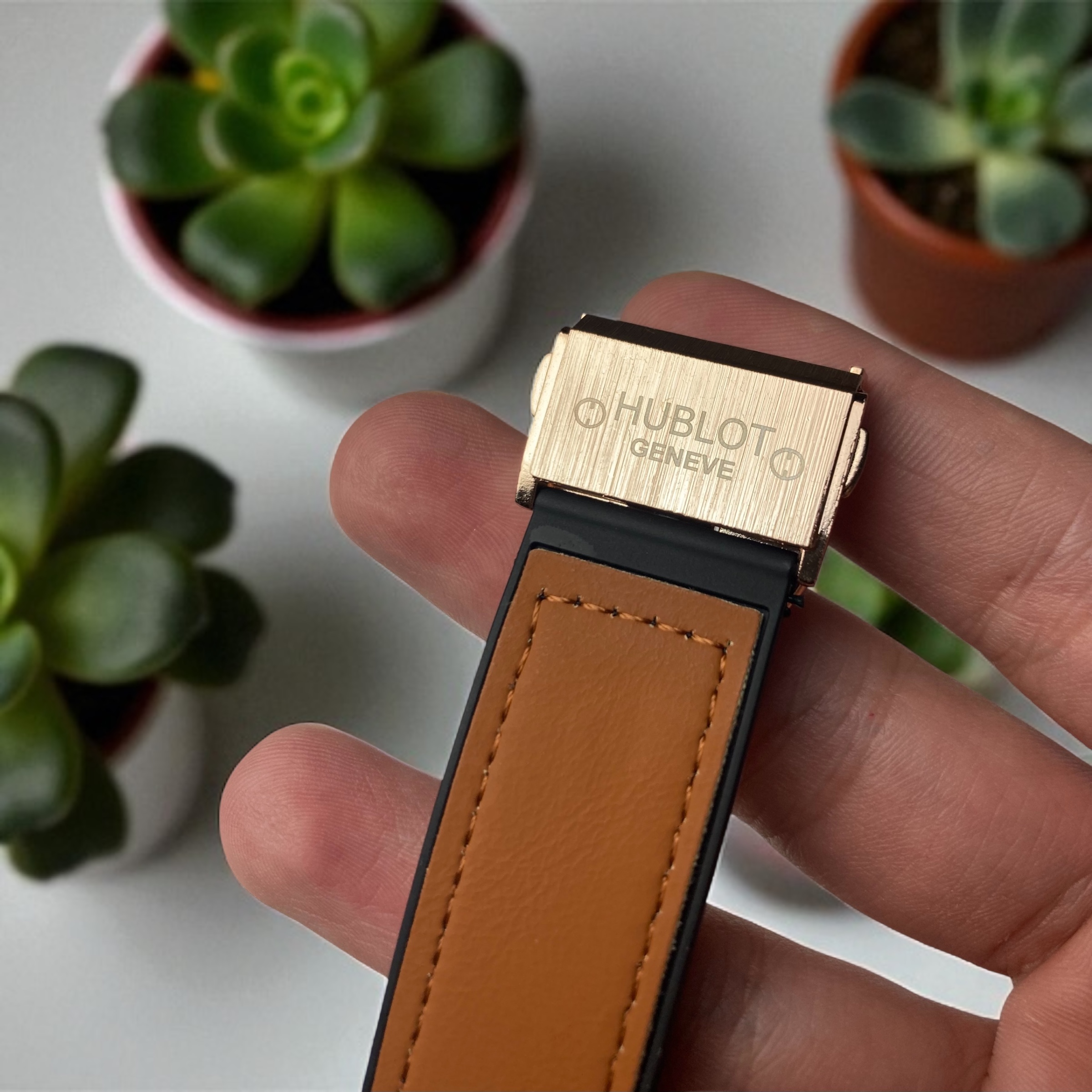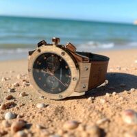 طراحی این ساعت بهگونهای است که از همان نگاه اول حس اصالت و خاص بودن را منتقل میکند. قاب رزگلد با پرداخت برسخورده در کنار پیچهای نمادین Hublot جلوهای صنعتی و مدرن دارد. ترکیب رنگ رزگلد و مشکی، تضادی شیک و همیشگی ایجاد کرده که ساعت را برای استایل رسمی و روزمره بینقص میسازد.