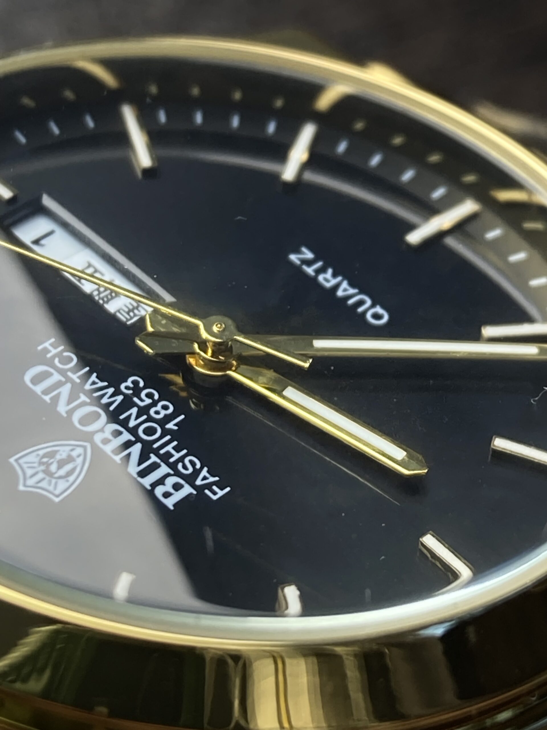 ساعت مچی مردانه برند بین باند binbond طلایی دو زمانه با قابلیت