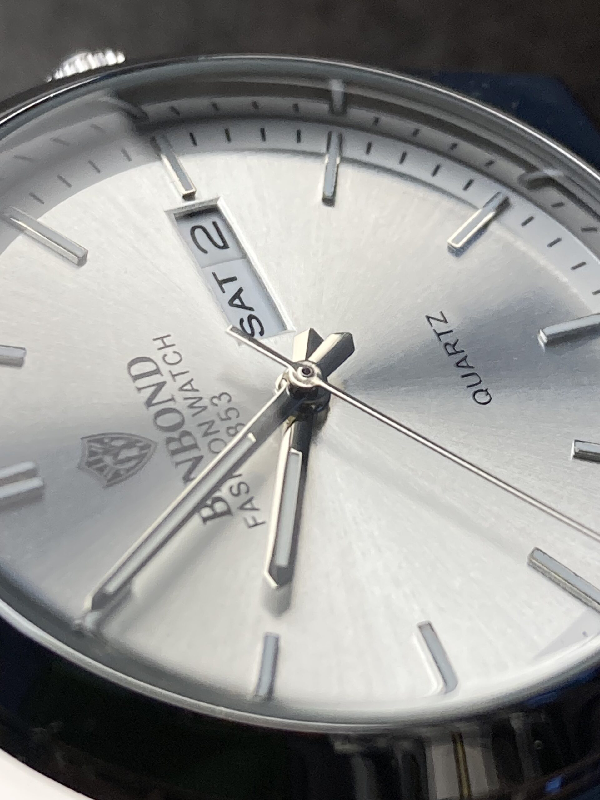 لوگوی BINBOND در بالای صفحه، حس اصالت و هویت برند را منتقل می‌کند و نوشته‌های روی صفحه کاملاً متعادل و بدون شلوغی هستند. این موضوع به زیبایی بصری ساعت کمک زیادی کرده است.