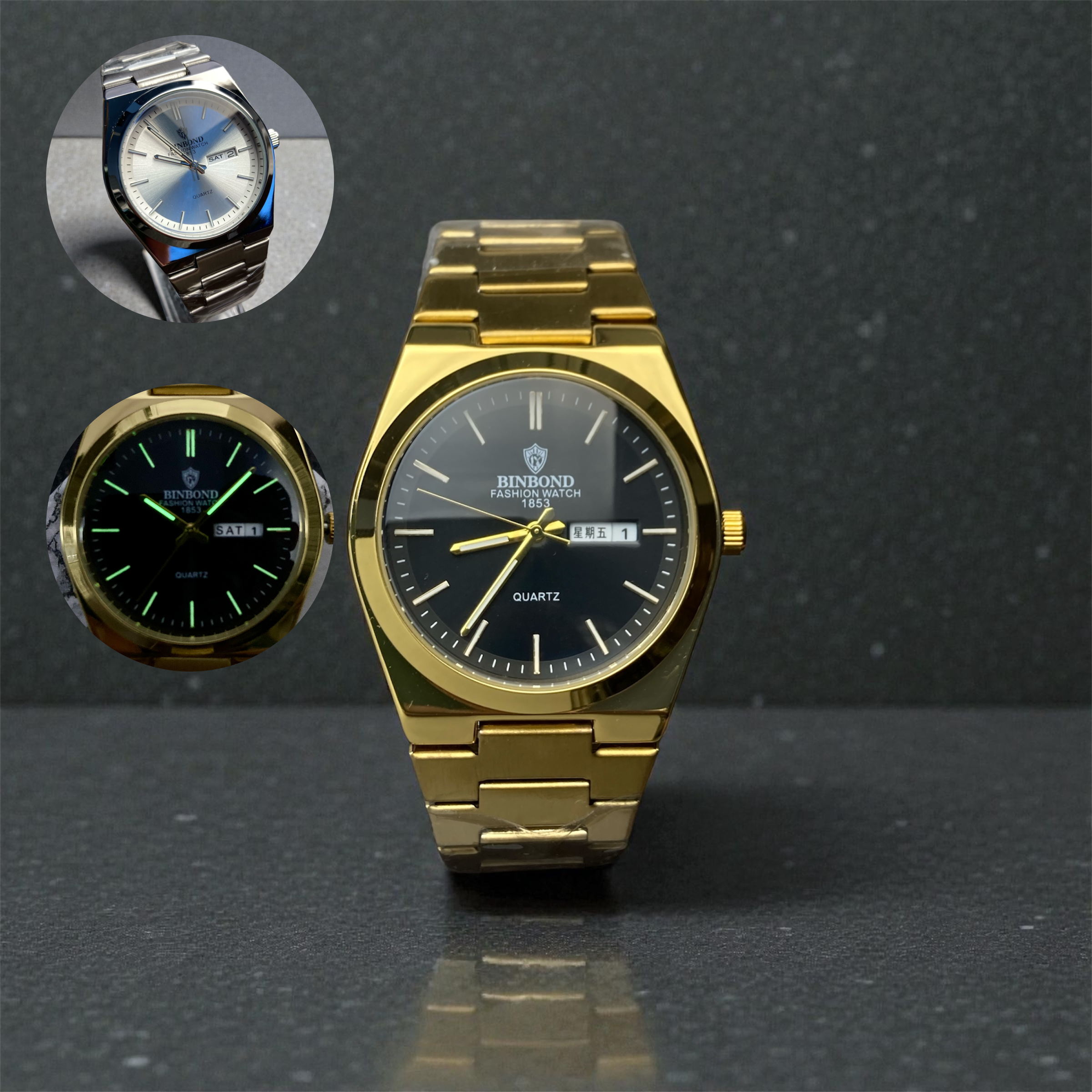این ساعت BINBOND در دو رنگ محبوب و پرطرفدار مشکی و طلایی عرضه شده است: