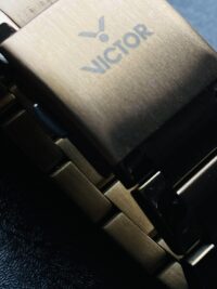 نشانگرهای ساعت بهصورت برجسته و با رنگ روشن طراحی شدهاند تا خوانایی صفحه حتی در نگاه سریع حفظ شود. عقربهها نیز طراحی ضخیم و واضحی دارند که حس قدرت و استحکام را منتقل میکند. لوگوی Victor در مرکز بالایی صفحه بهصورت مینیمال قرار گرفته و بدون شلوغی، هویت برند را نشان میدهد.