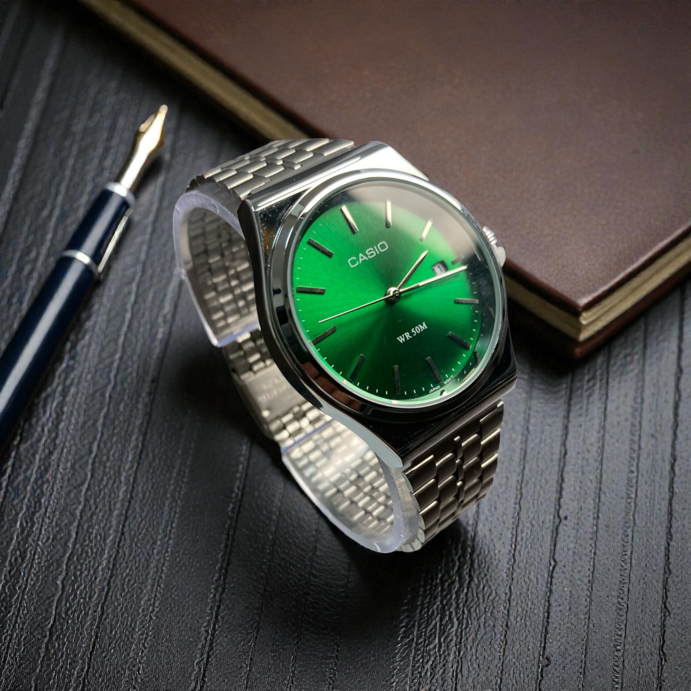 ساعت مچی استیل کاسیو با صفحه سبز و تقویم CASIO 4393