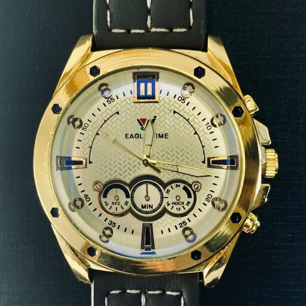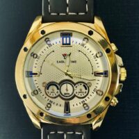 ساعت مردانه EAGLE TIME ایگل تایم 37G: این برند ساعت مردانه سایز Lبزرگ با صفحه سفید طلایی معرفی کرده است که باعث شده تا این ساعت خاص بنظر آید و همچنین طلایی بودن خود ساعت با طراحی شیک آن را منحصربه فرد کرده است.