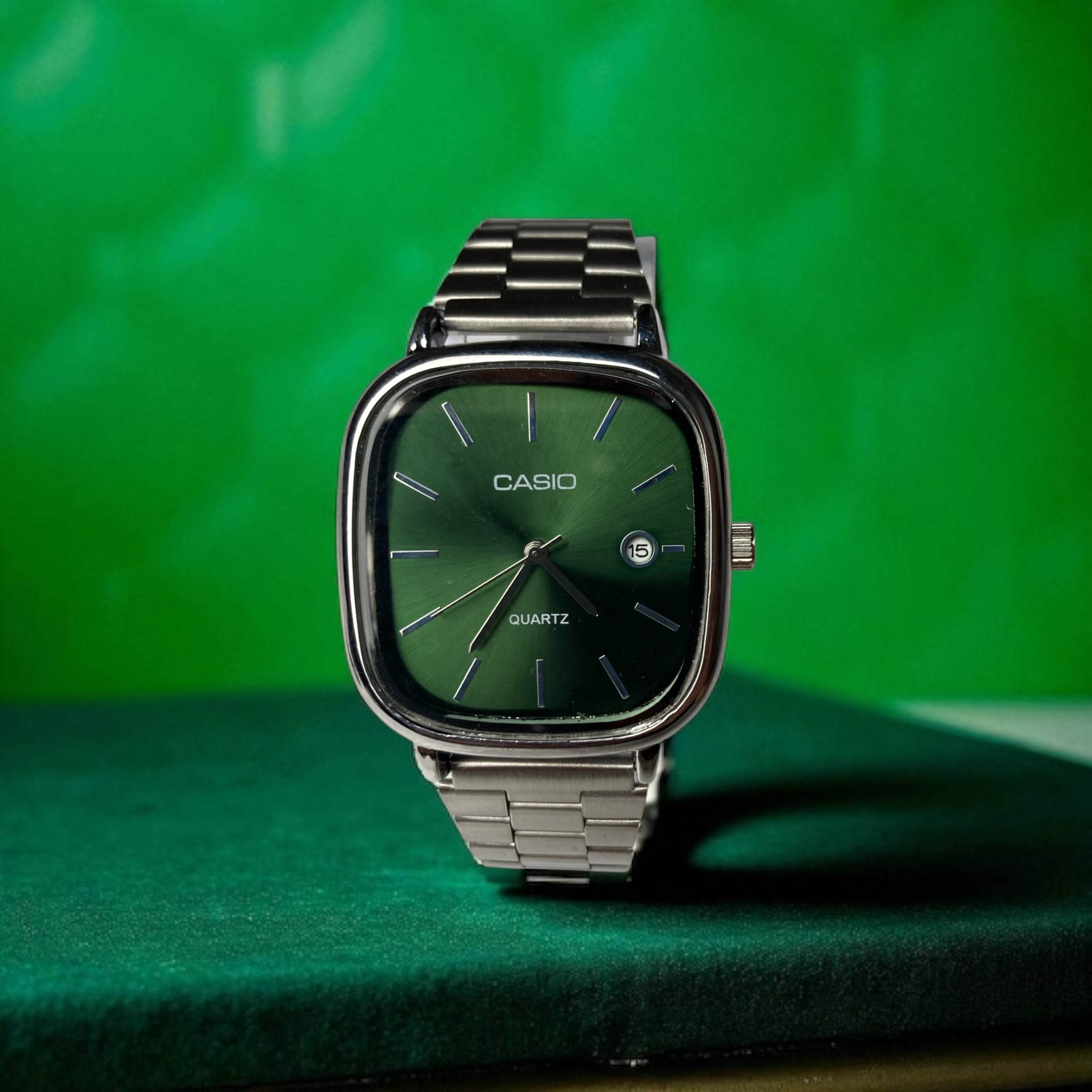 ساعت مچی مردانه کاسیو با طراحی کلاسیک و ساده، صفحهای در دو رنگ جذاب سبز و خاکستری، بند استیل ضدزنگ و موتور کوارتز دقیق، انتخابی عالی برای آقایان شیکپوش است. این ساعت هم در موقعیتهای رسمی و هم در استفاده روزانه، بهراحتی با هر استایلی ست میشود.